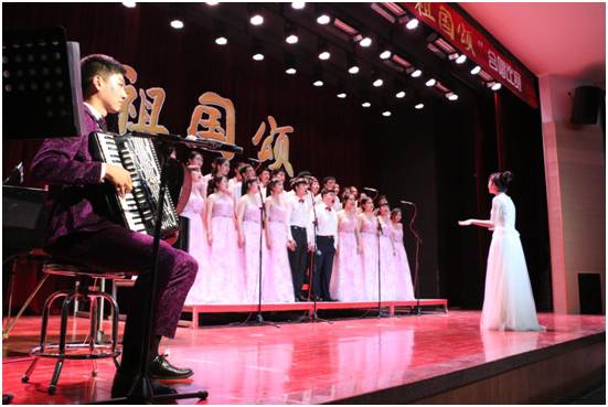 管理与经济学部合唱团登上舞台,以真挚的情感歌唱对祖国母亲的热爱。