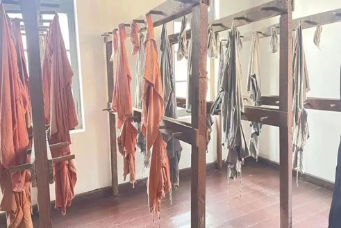 日俄监狱旧址博物馆,该监狱原由沙俄建于1902年,在日俄战争期间曾临时改作俄军骑兵营地和战地医院,从1907年开始由日本侵略者逐步改扩建为监狱。日伪时期,它是我国东北地区最大的一座法西斯监狱。这所监狱曾杀害过很多中国、朝鲜和日本的革命志士及无辜群众。日俄监狱可是说是名副其实的“人间地狱”,走进日俄监狱,首先看到的是挂着各种颜色囚服的检身室。这为防止犯人携带武器有些人刑期长,经过几年后,看守认为其表现好的话就给换上深蓝色囚衣,每天早晚,“犯人”们都要经过这里。