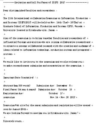 会议名称: The 11th International collaboration Symposium on Information, Production and Systems (ISIPS 2017)